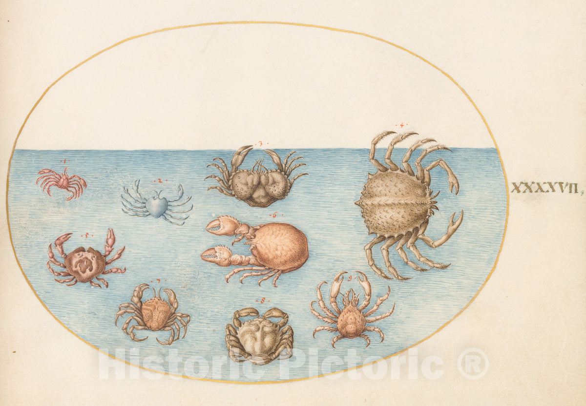 Art Print : Joris Hoefnagel, Animalia Aqvatilia et Cochiliata (Aqva): Plate XLVII, c.1578 - Vintage Wall Art