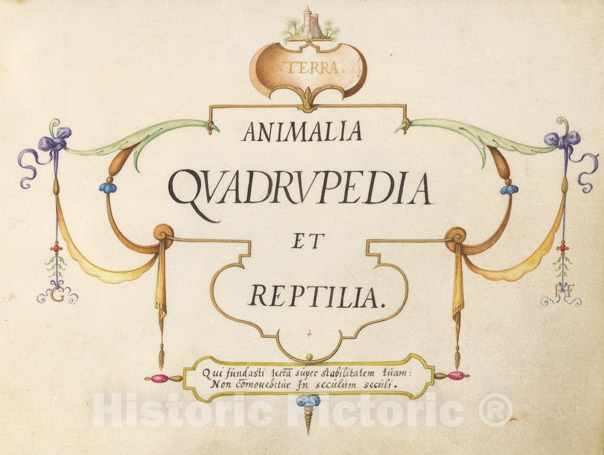 • .Art Print : Joris Hoefnagel, Animalia Qvadrvpedia et Reptilia (Terra): Title Page, c.1578 - Vintage Wall Art