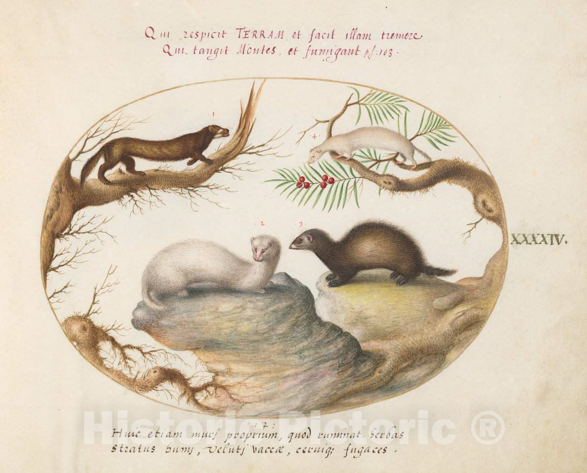 Artist: Joris Hoefnagel | Drawing: Animalia Qvadrvpedia et Reptilia (Terra): Plate XLIV | Original Medium: watercolor and gouache, with oval border in gold, on vellum
