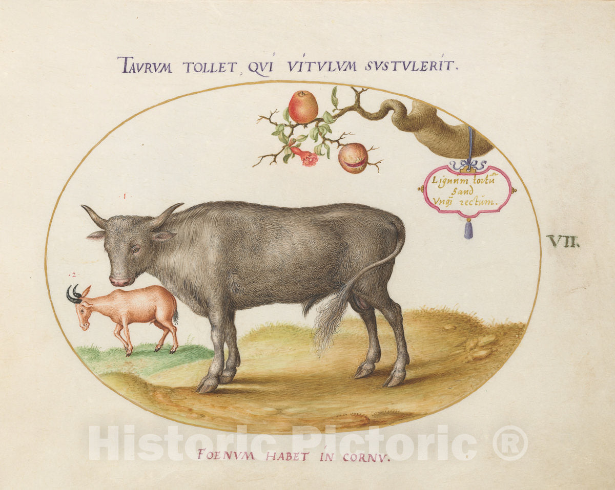 Artist: Joris Hoefnagel | Drawing: Animalia Qvadrvpedia et Reptilia (Terra): Plate VII | Original Medium: watercolor and gouache, with oval border in gold, on vellum