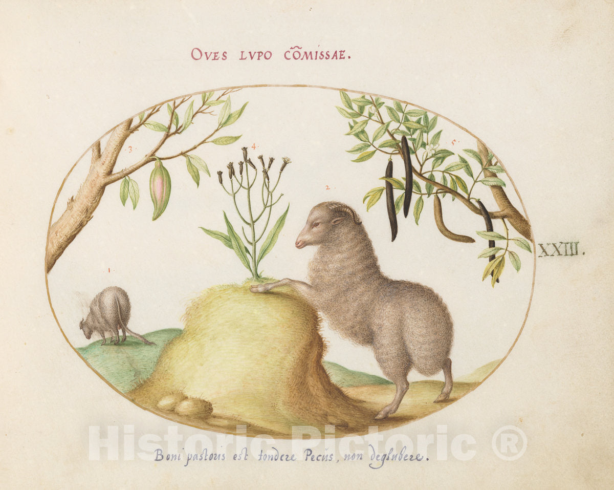 Artist: Joris Hoefnagel | Drawing: Animalia Qvadrvpedia et Reptilia (Terra): Plate XXIII | Original Medium: watercolor and gouache, with oval border in gold, on vellum