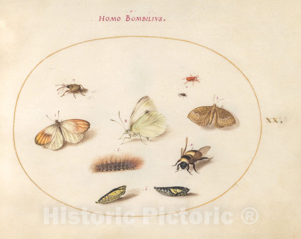 Art Print : Joris Hoefnagel, Animalia Rationalia et Insecta (Ignis): Plate XX, c.1578 - Vintage Wall Art
