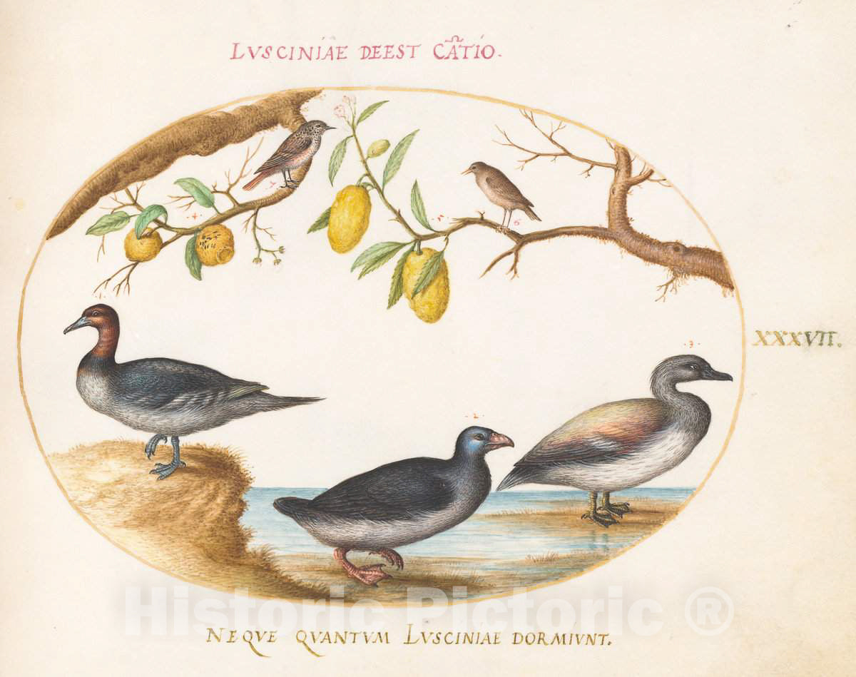 Art Print : Joris Hoefnagel, Animalia Volatilia et Amphibia (Aier): Plate XXXVII, c.1578 - Vintage Wall Art