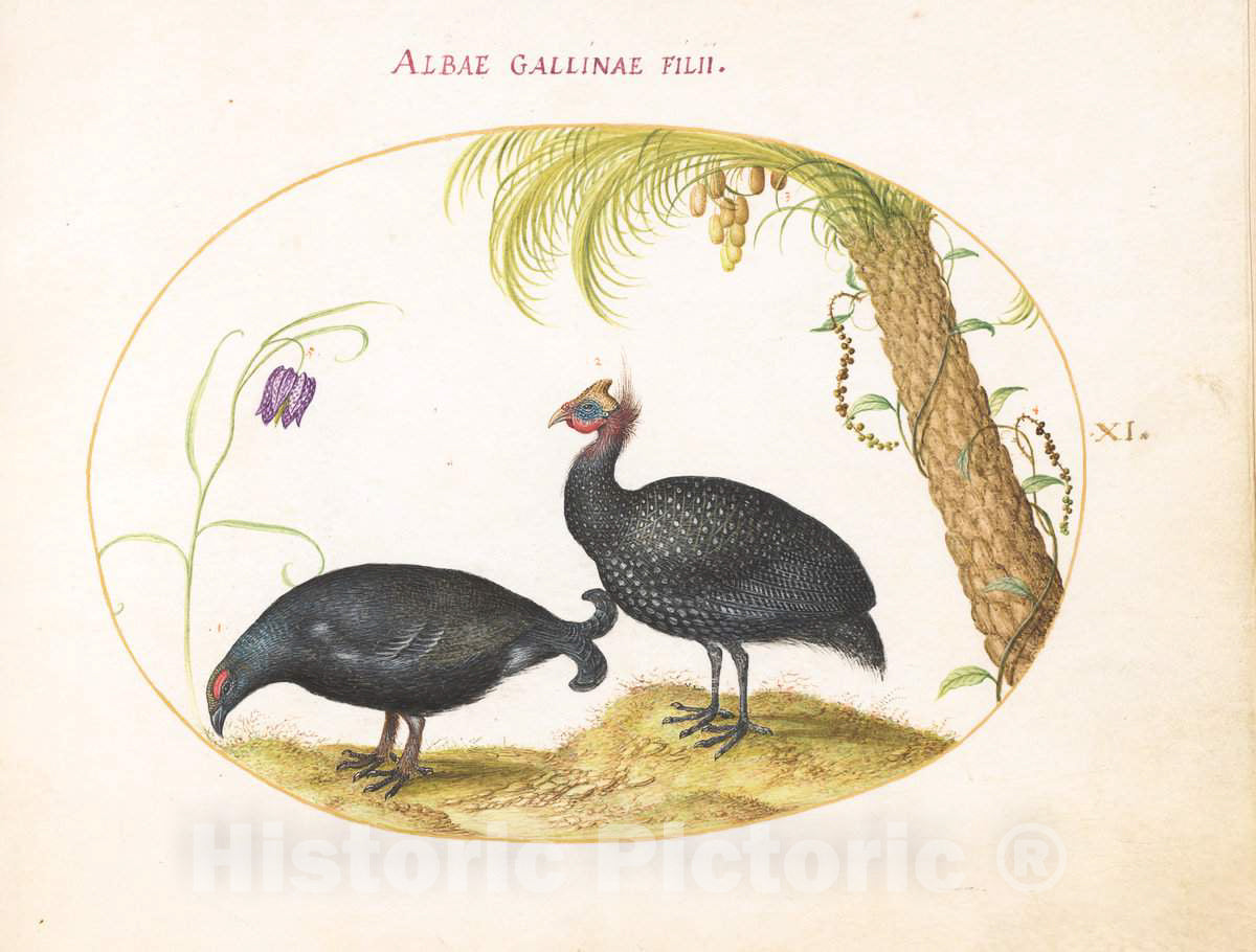 • .Art Print : Joris Hoefnagel, Animalia Volatilia et Amphibia (Aier): Plate XI, c.1578 - Vintage Wall Art