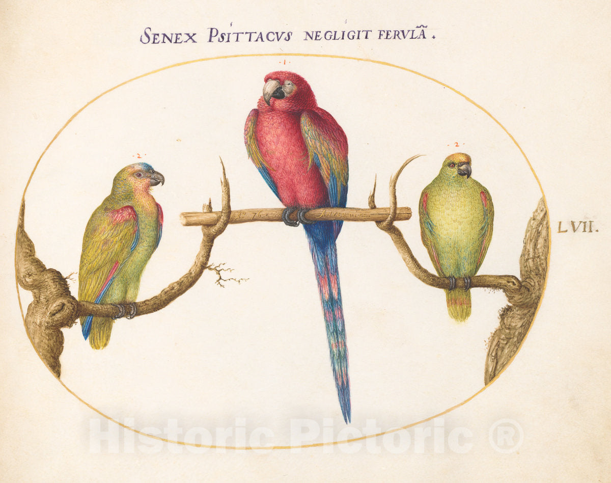 Art Print : Joris Hoefnagel, Animalia Volatilia et Amphibia (Aier): Plate LVII, c.1578 - Vintage Wall Art