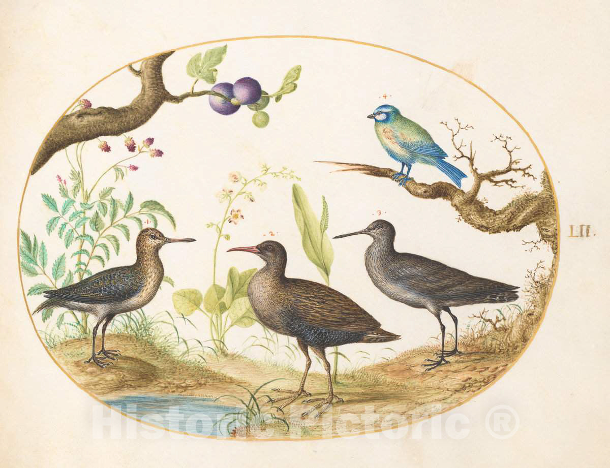Art Print : Joris Hoefnagel, Animalia Volatilia et Amphibia (Aier): Plate LII, c.1578 - Vintage Wall Art