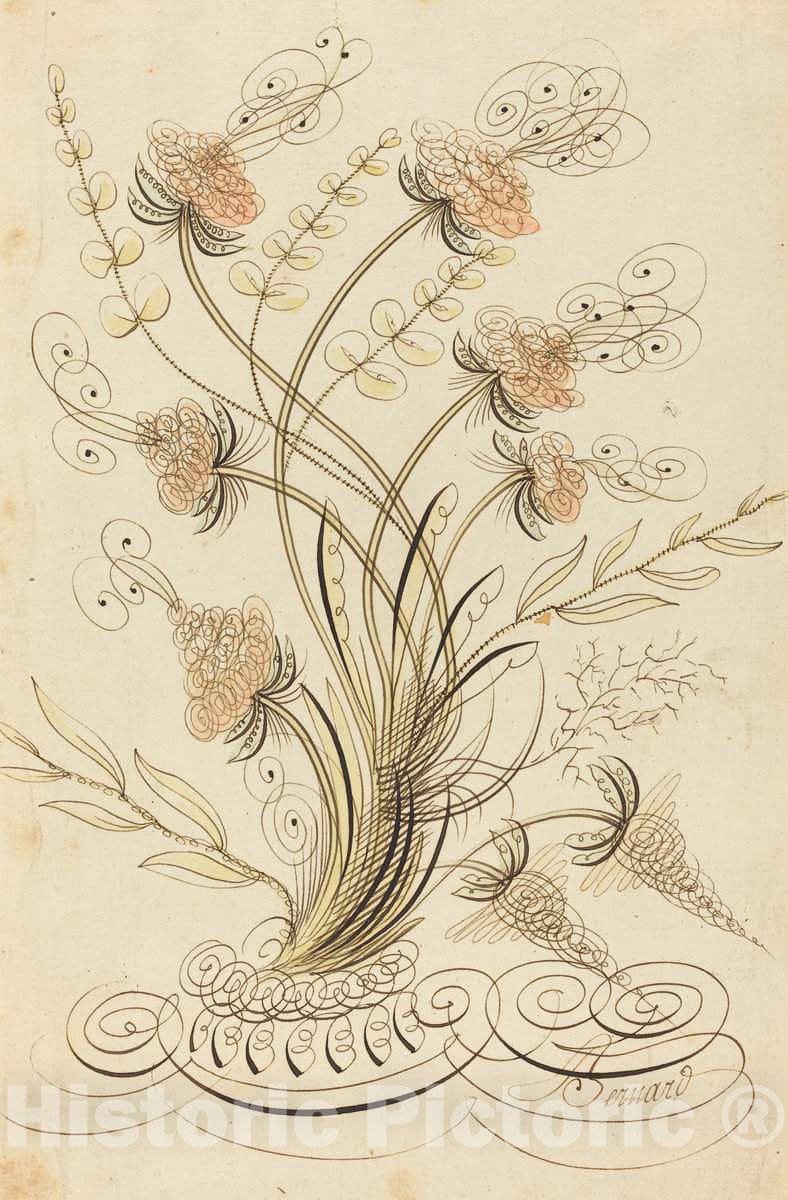 Artist: Jean-Joseph Bernard called Bernard de Paris | Drawing: Calligraphic Flowers | Original Medium: pen and brown and iron gall ink with watercolor on laid paper