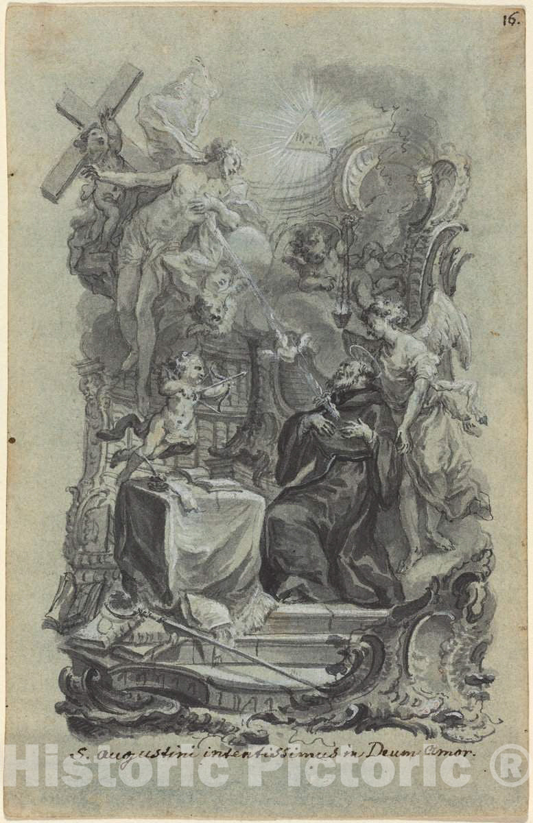 Artist: Joseph Christ | Drawing: Saint Augustine's Zealous Love of God | Original Medium: pen and gray ink with gray wash and white heightening, incised for transfer on laid paper