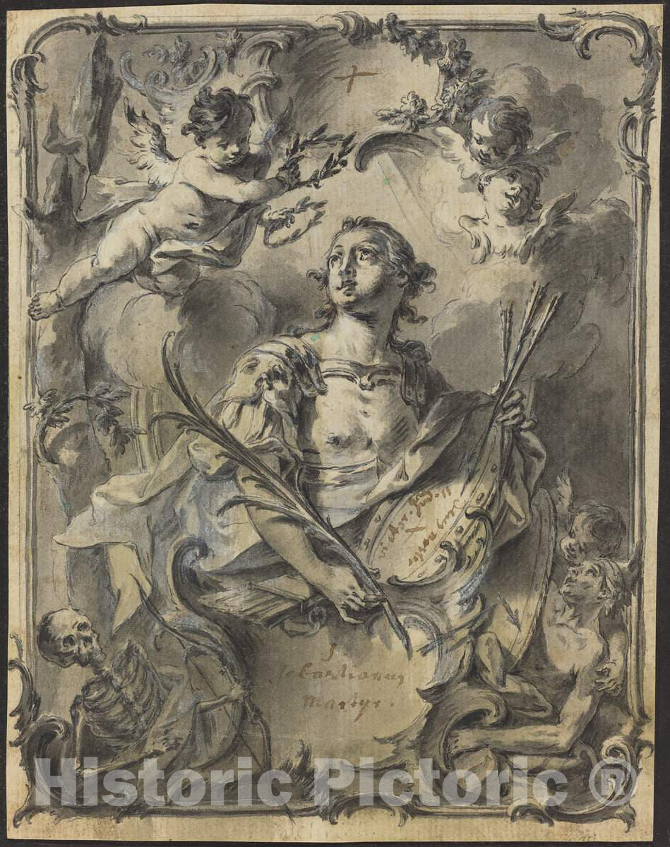 Artist: Joseph Christ | Drawing: Saint Sebastian | Original Medium: brush and black ink with gray wash over graphite, heightened with white, on laid paper and incised for transfer; the verso rubbed with red chalk