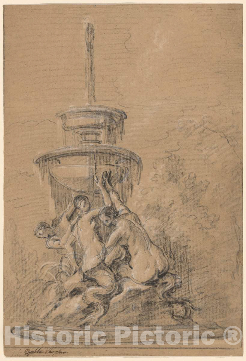 • .Art Print : Joseph Ignace François Parrocel, A Fountain with Three Nereids, 1740s(?) - Vintage Wall Art