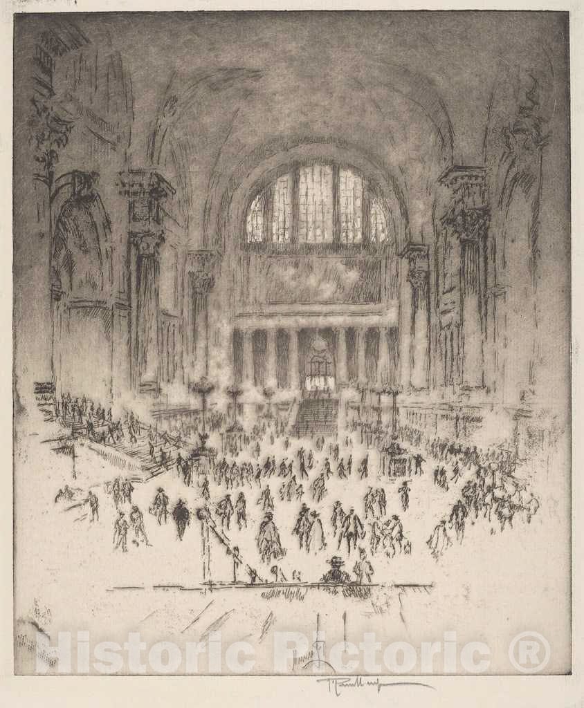 Art Print : Joseph Pennell, The Marble Hall, Pennsylvania Station, New York, 1919 - Vintage Wall Art