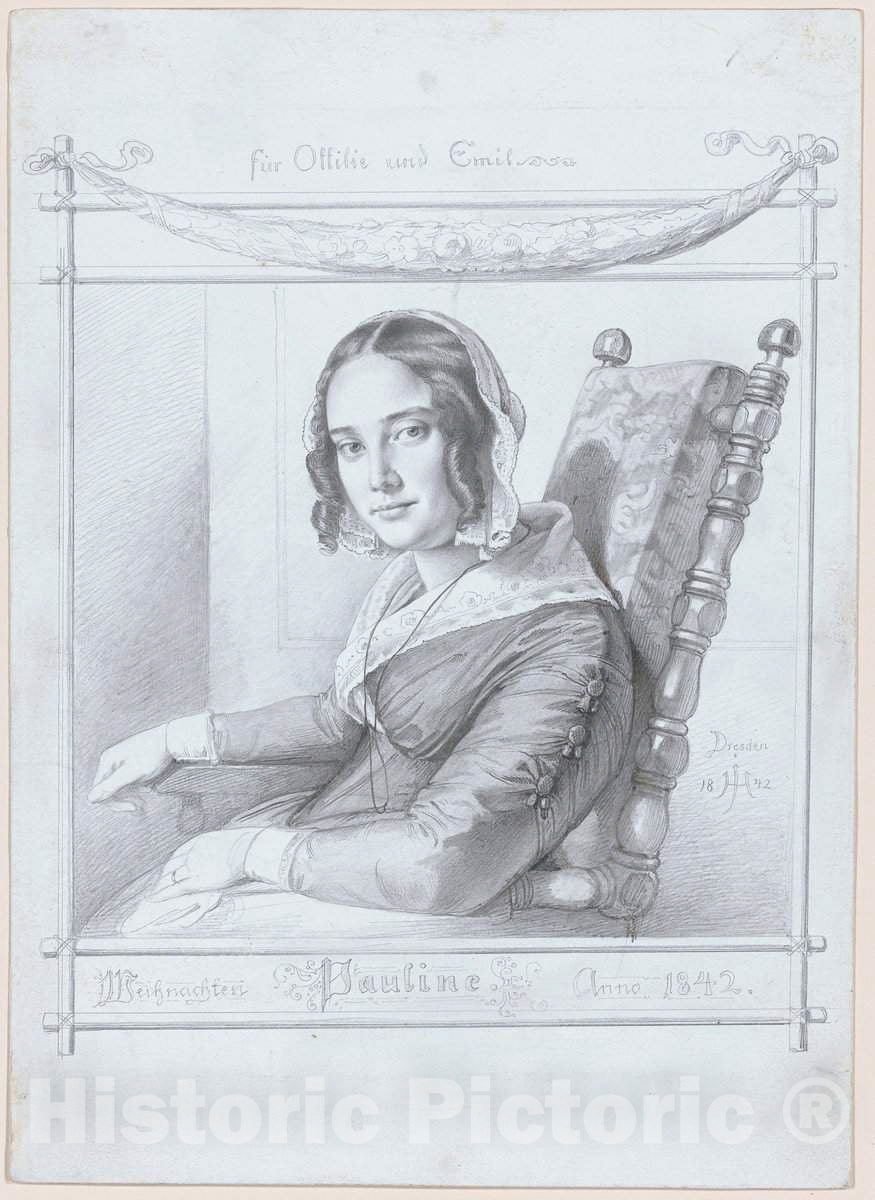 Art Print : Julius Hübner, Pauline, The Wife of The Artist, 1842 - Vintage Wall Art