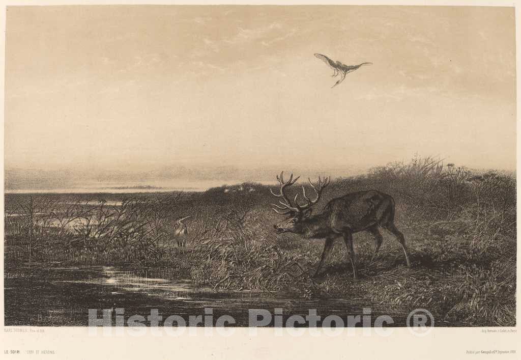 Artist: Karl Bodmer | Print: Le Soir. Cerf et Herons | Original Medium: chiaroscuro lithograph
