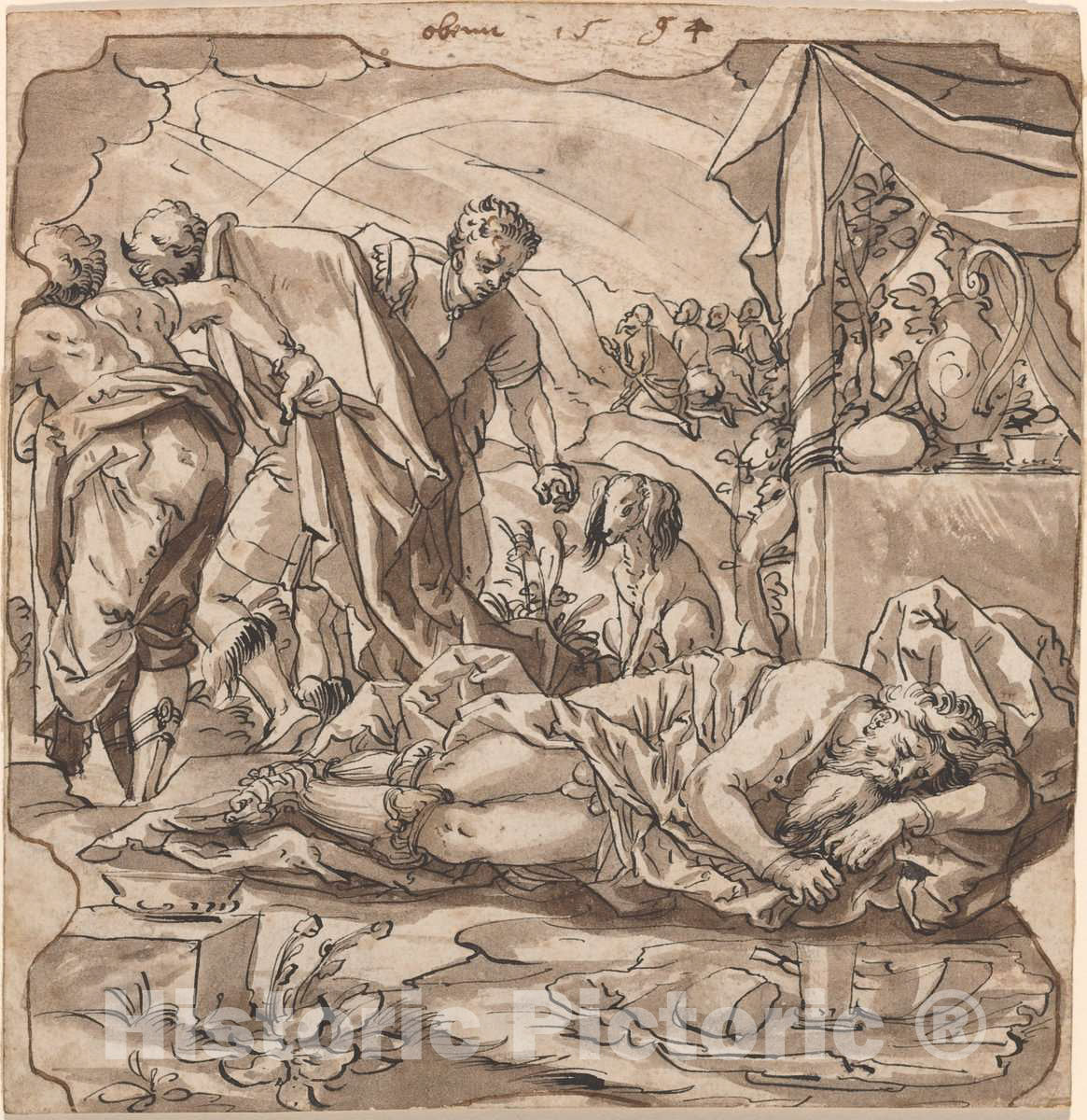 • .Art Print : Kübler After Stimmer, The Drunkenness of Noah, c.1583 - Vintage Wall Art