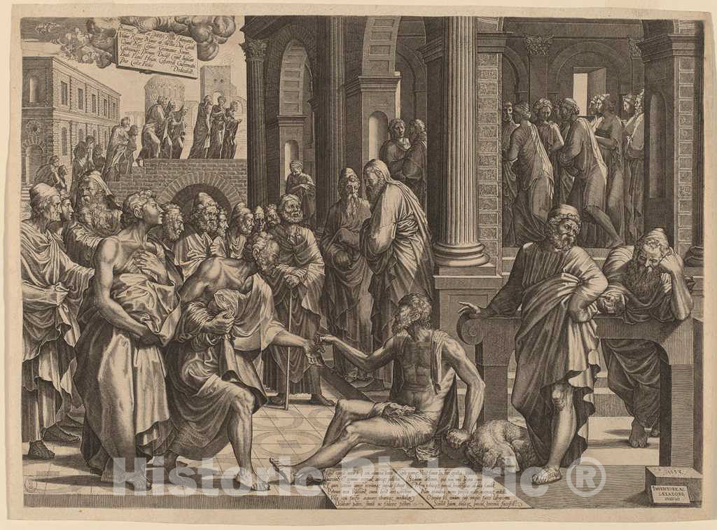 Art Print : Lambert Suavius, Apostles Peter and John Healing The Paralytic, 1553 - Vintage Wall Art
