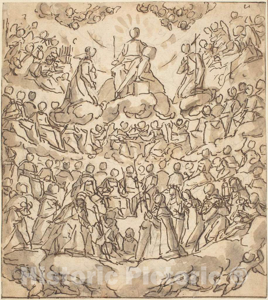 Artist: Lazzaro Tavarone | Drawing: The Blessed in Paradise with the Virgin and St. John the Baptist before God | Original Medium: pen and brown ink with brown wash over black chalk on laid paper