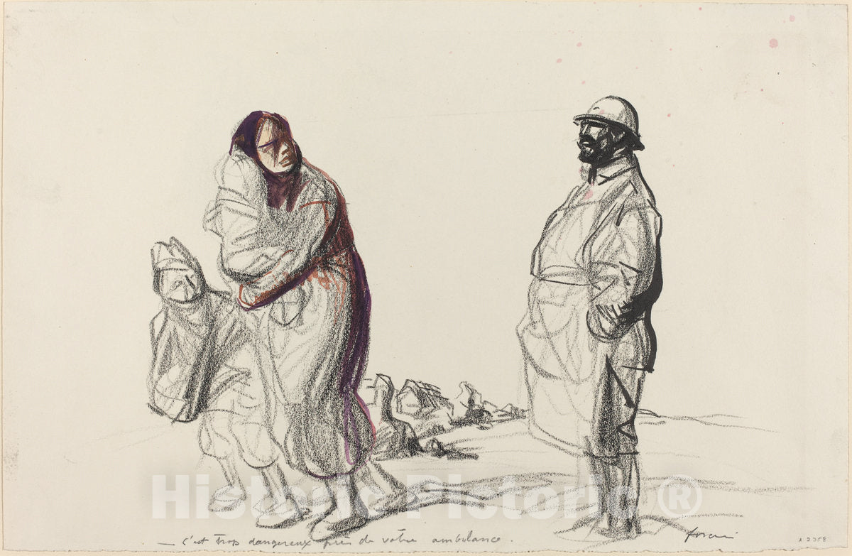 Art Print : Louis Forain, C'est trop dangereux pres de Votre Ambulance, c.1917 - Vintage Wall Art
