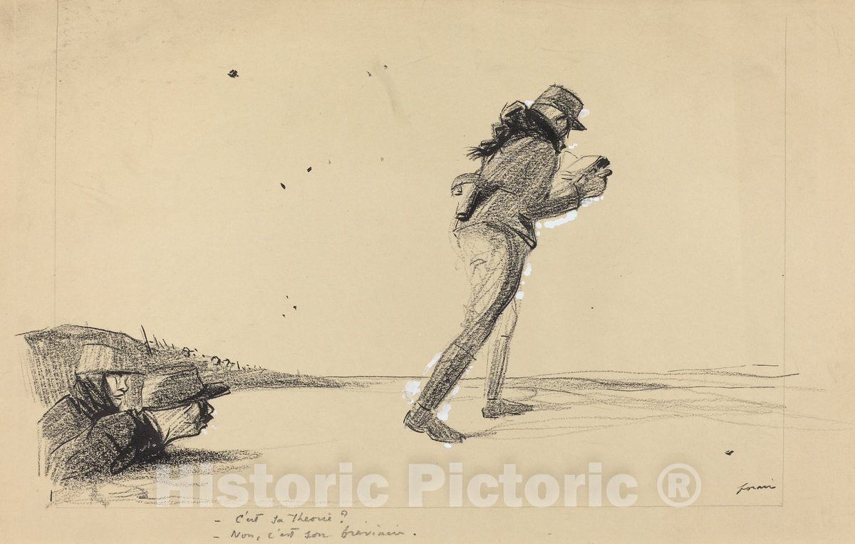 • .Art Print : Louis Forain, Sur le Front. -C'est sa theorie? -Non, C'est Son breviaire, c.1917 - Vintage Wall Art