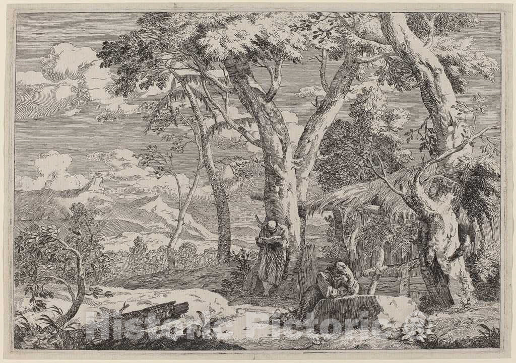 Artist: Marco Ricci | Print: Wilderness Landscape with Two Monks | Original Medium: etching on laid paper