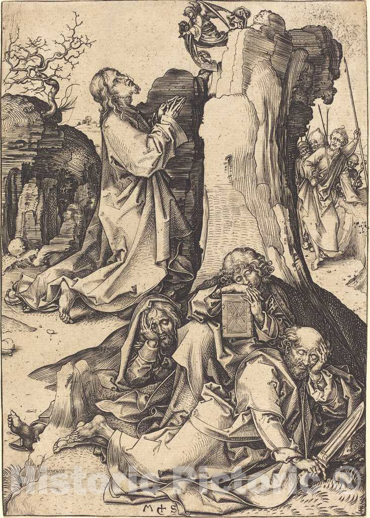 • .Art Print : Martin Schongauer, The Agony in The Garden, c. 1480 - Vintage Wall Art