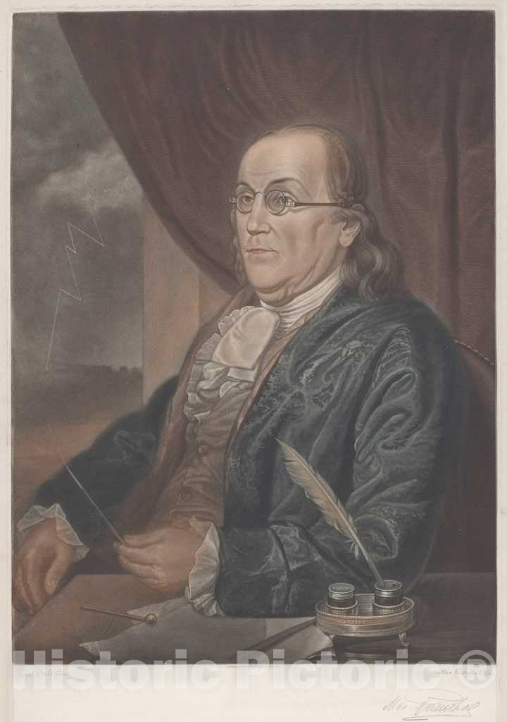 Art Print : Max Rosenthal After Willson Peale, Benjamin Franklin, 1901 - Vintage Wall Art