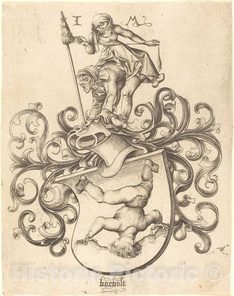 Art Print : Meckenem After Master of The Housebook, Coat of Arms with Tumbling Boy, c.1485 - Vintage Wall Art