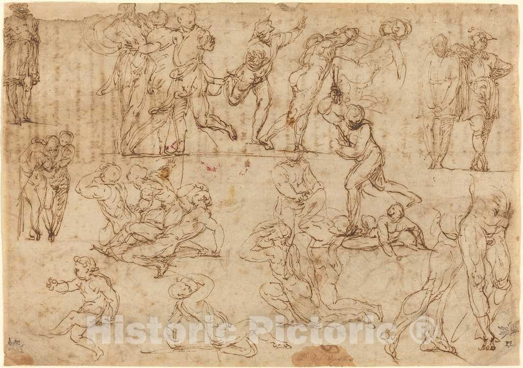 • .Art Print : Perino del Vaga, Figure Studies [Recto] - Vintage Wall Art