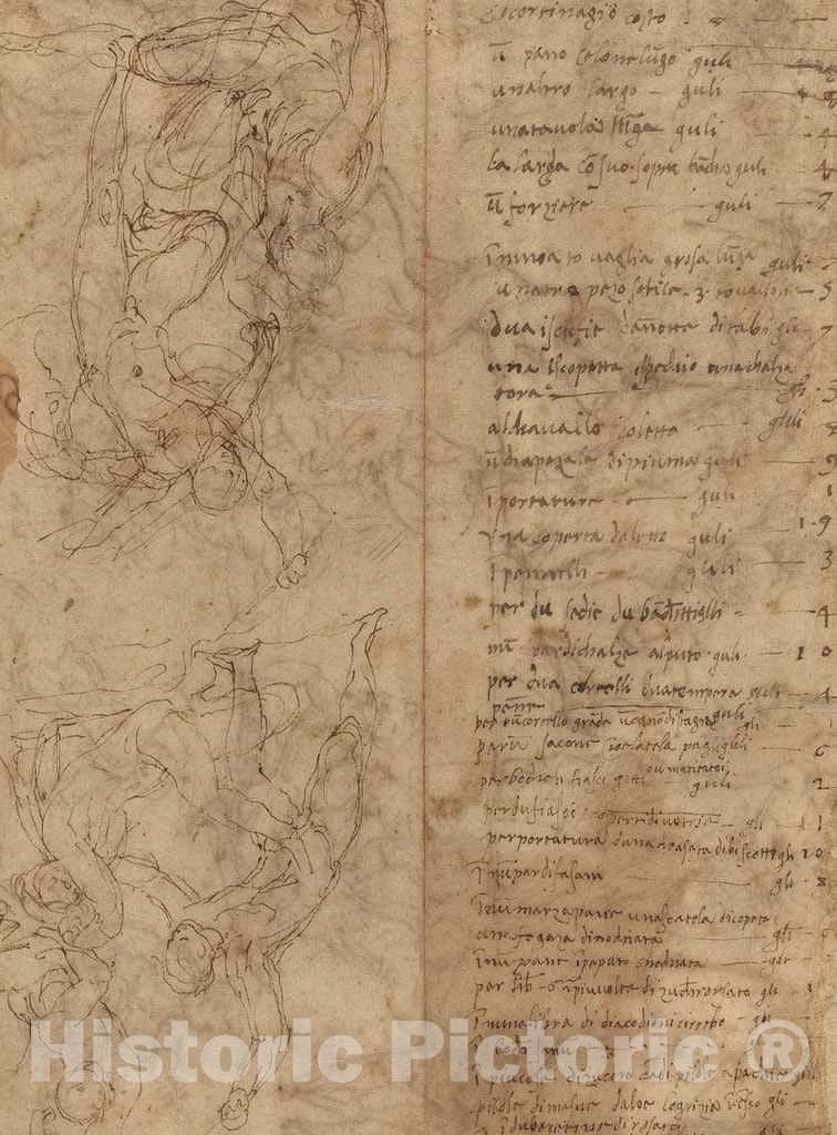 • .Art Print : Perino del Vaga, Figure Studies [Verso] - Vintage Wall Art