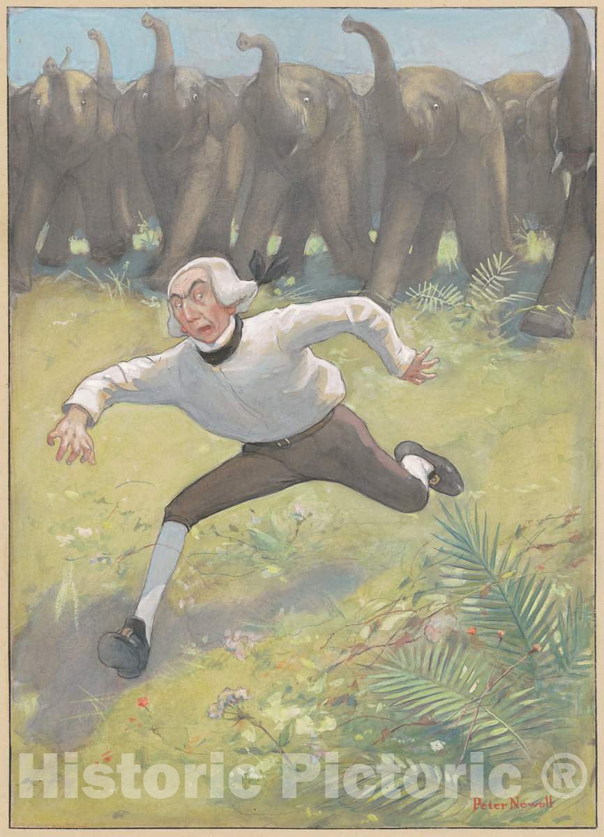 Art Print : Peter Newell, Man Running from Elephants, 1901 - Vintage Wall Art