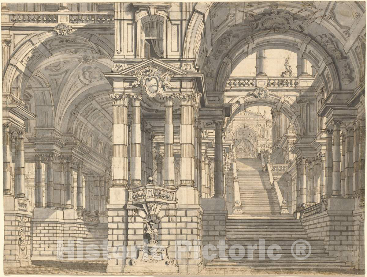 Art Print : Pietro Gonzaga, Fantasy of Magnificent Courtyards and Loggie with a Monumental Staircase, 1770s - Vintage Wall Art