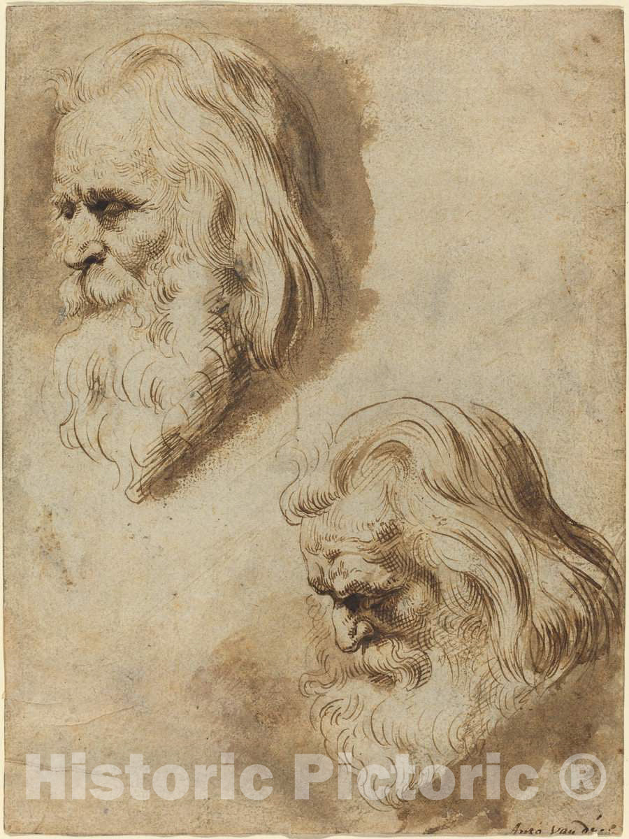 • .Art Print : Pontius After Rubens, Two Studies of an Elderly Man's Head - Vintage Wall Art
