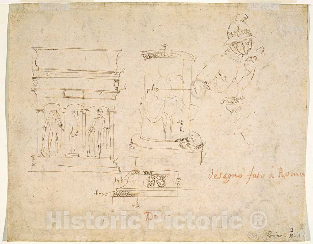 • Art Print : Raphael, Architectural Details and a Soldier [Verso] - Vintage Wall Art