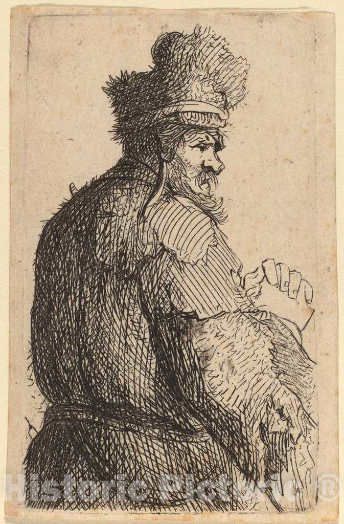 Art Print : Rembrandt, Old Man Seen from Behind, Profile to Right, c. 1631 - Vintage Wall Art