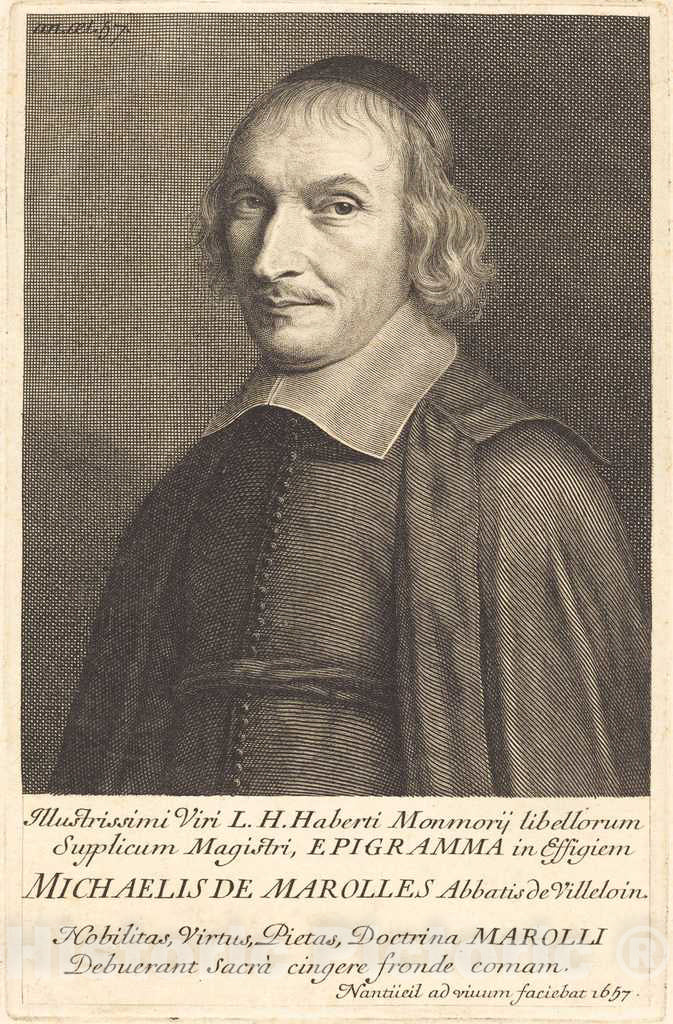 • .Art Print : Robert Nanteuil, L'Abbe Michel de Marolles, 1657 - Vintage Wall Art