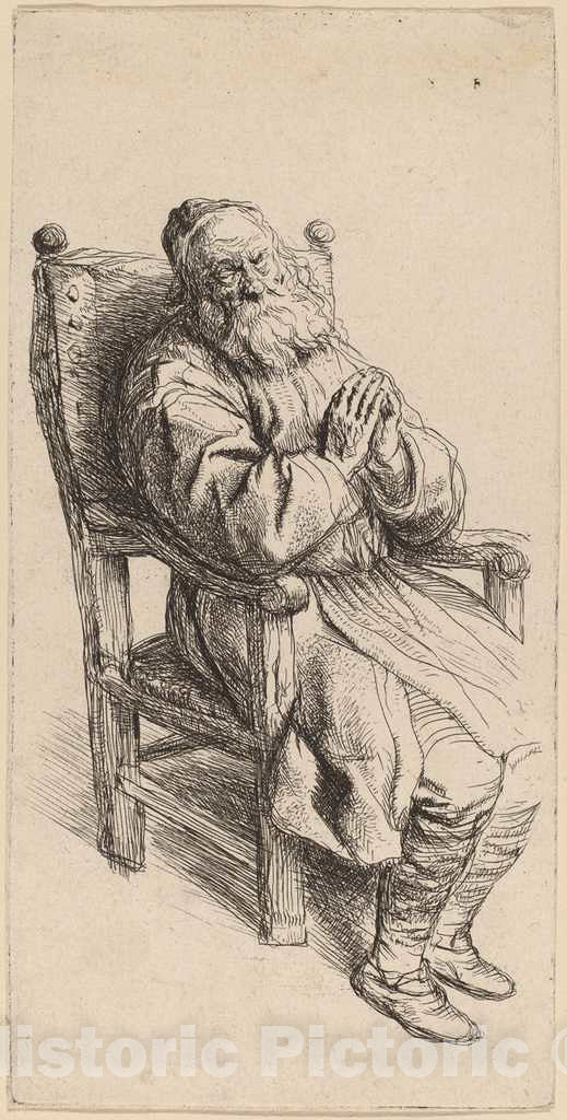 Artist: Salomon Koninck | Print: Old Man Sleeping in an Armchair | Original Medium: etching