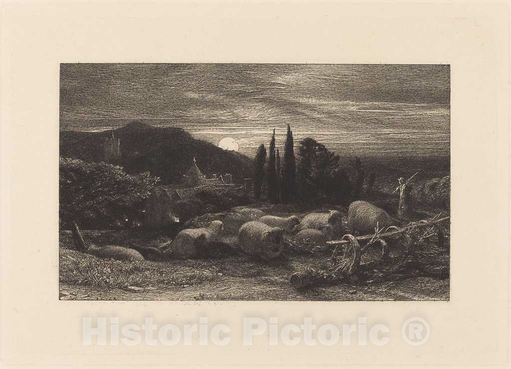 Art Print : Samuel Palmer, The Rising Moon, or an English Pastoral, 1857 - Vintage Wall Art