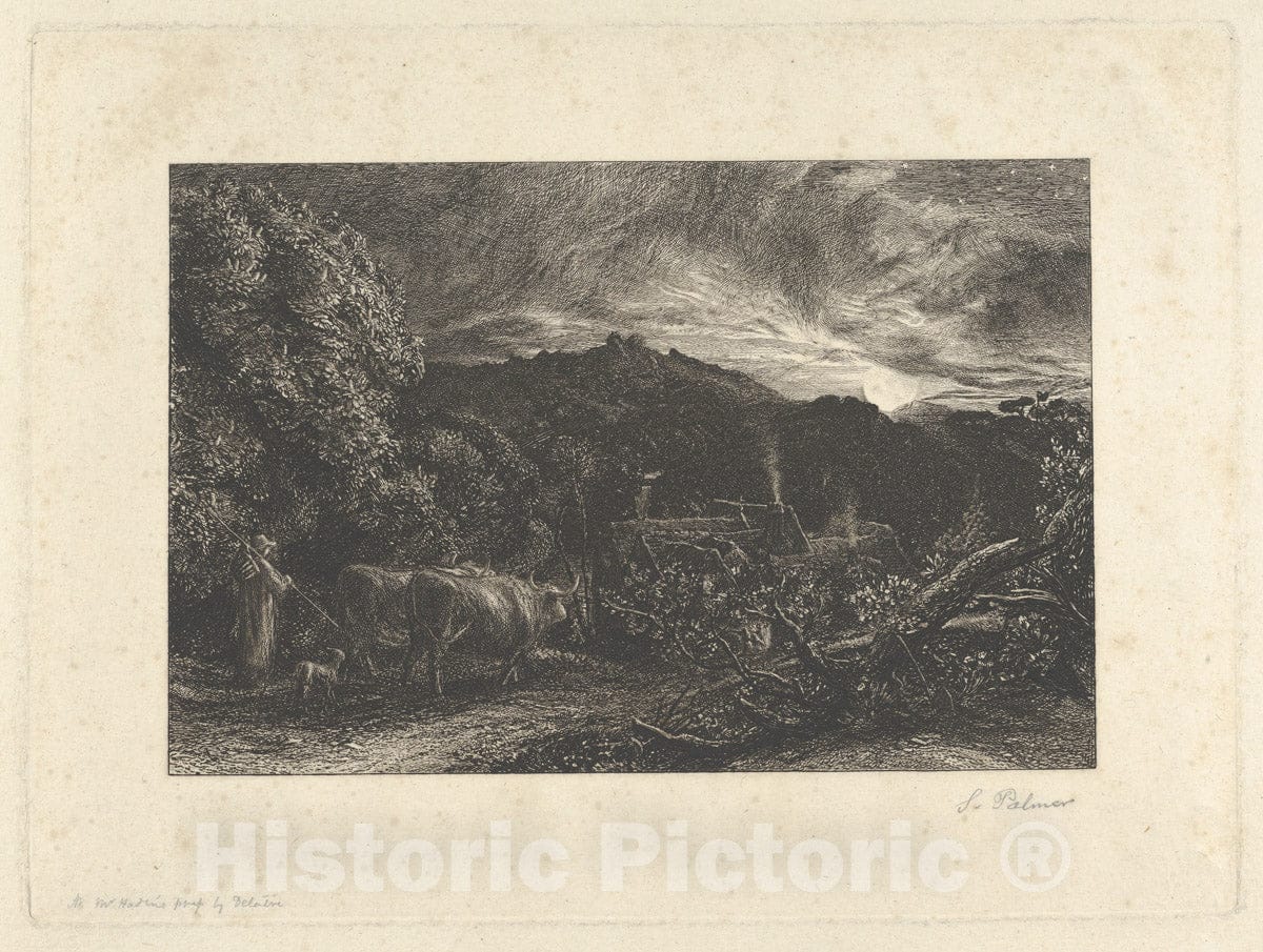Art Print : Samuel Palmer, The Weary Ploughman, or The Herdsman, or Tardus Bubulcus, in or After 1858 - Vintage Wall Art