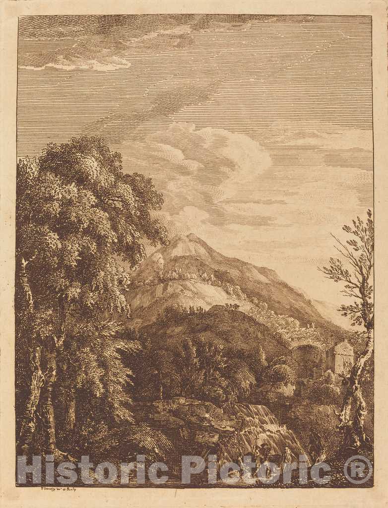 Artist: Paul Sandby | Print: Mountainous Landscape with a Waterfall, Round Tower, Castle, and Banditti | Original Medium: etching
