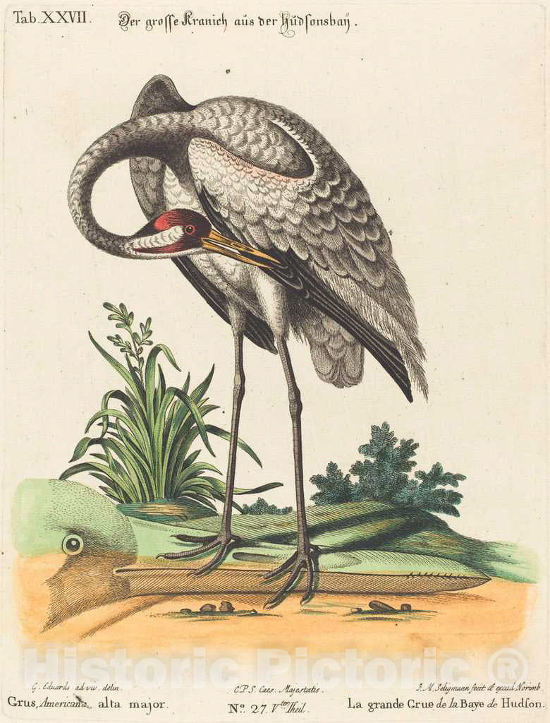 Artist: Johann Michael Seligmann after George Edwards | Print: Grus Americana, alta major | Original Medium: hand-colored etching on laid paper