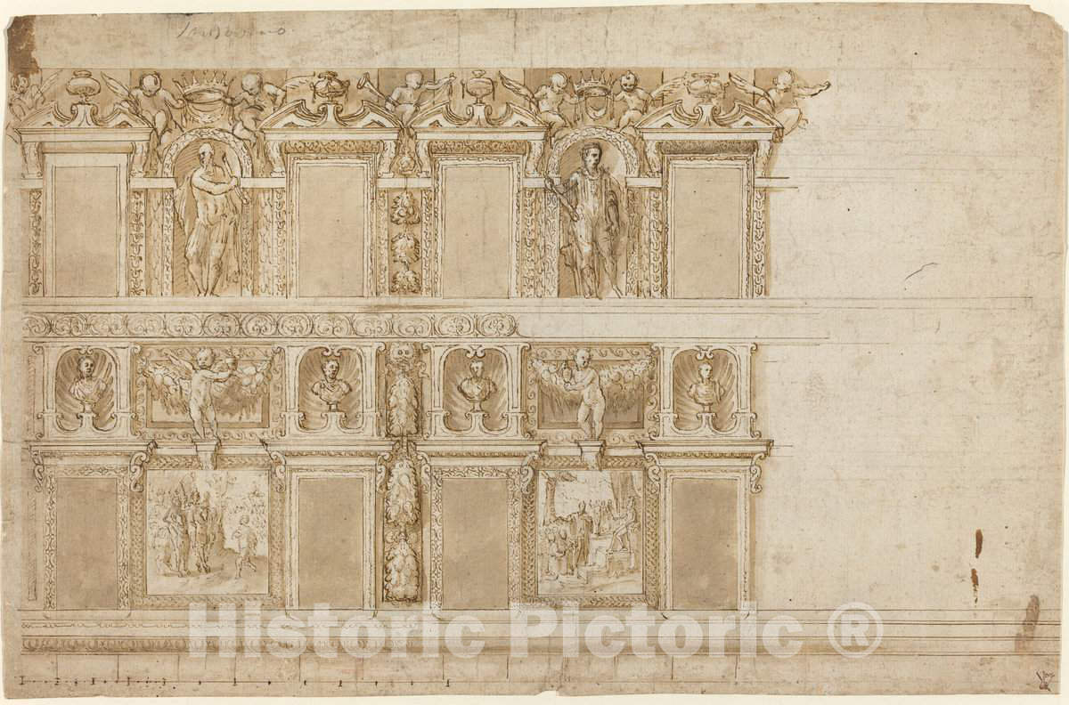 Art Print : Semino, A Palatial Wall Ornamented with Sculptures and Paintings, c. 1570 - Vintage Wall Art