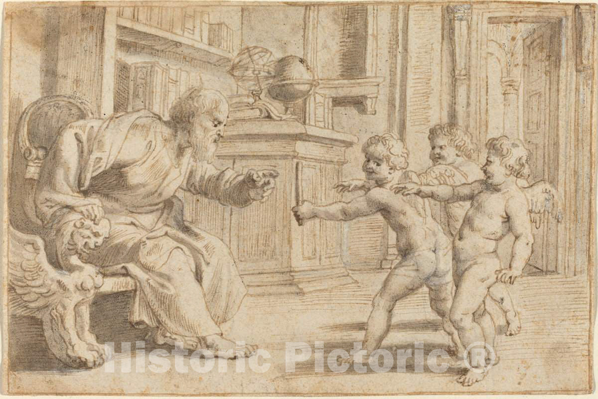 Art Print : Sir Peter Paul Rubens, Putti Testing a Man's Perception of Depth, c. 1613 - Vintage Wall Art