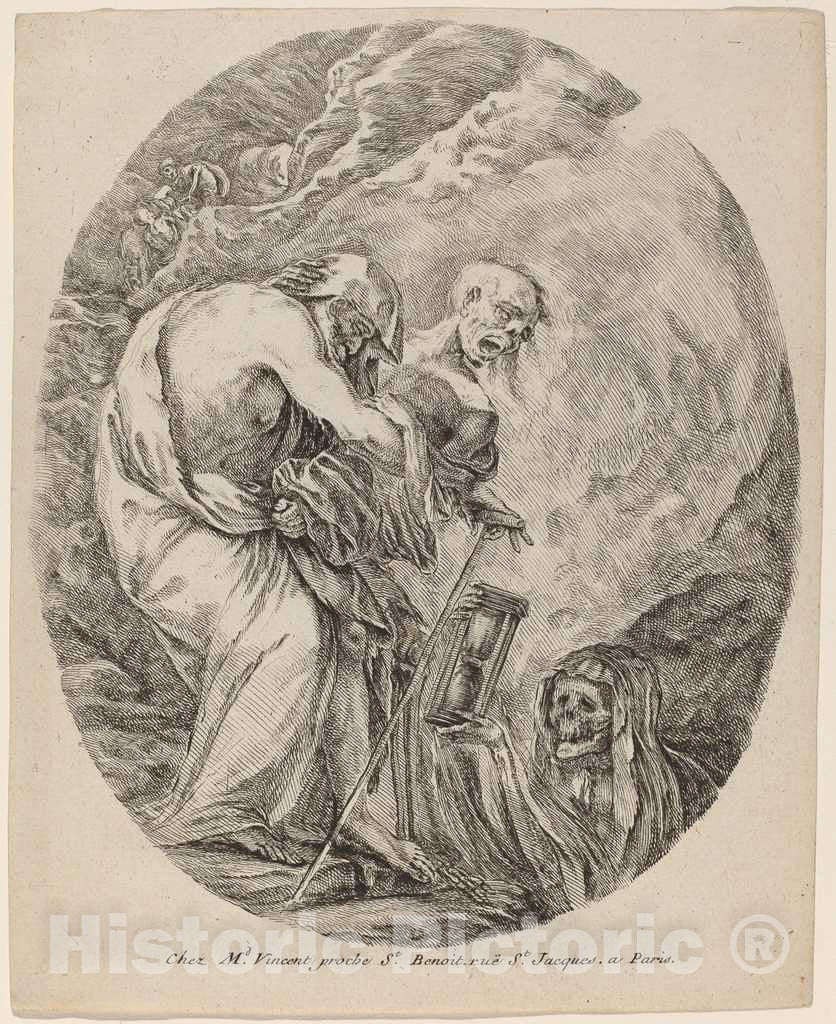 Art Print : Stefano Della Bella, Death with an Old Man, 1648 - Vintage Wall Art