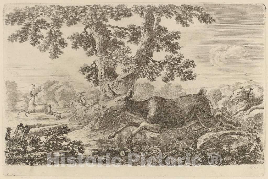Art Print : Stefano Della Bella, Deer Chased by a Dog to The Right - Vintage Wall Art