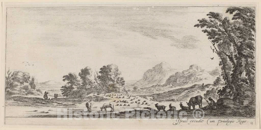 • Art Print : Stefano Della Bella, Landscape with Shepherd Guarding his Flock, in or Before 1647 - Vintage Wall Art