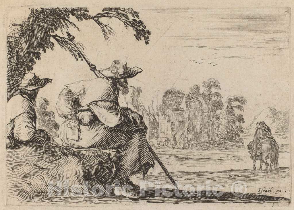 • .Art Print : Stefano Della Bella, Seated Pilgrims, 1642 - Vintage Wall Art
