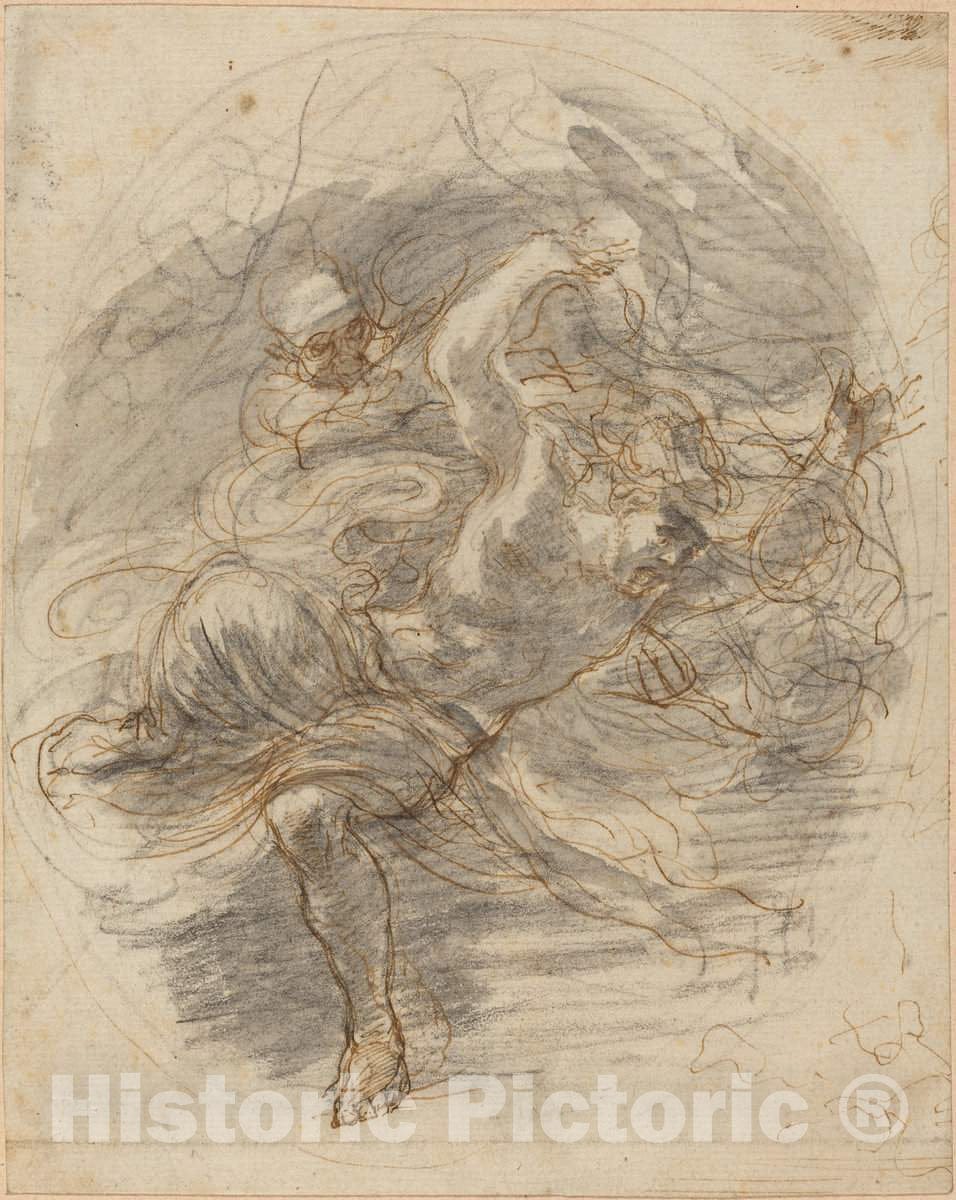 Artist: Stefano Della Bella | Drawing: A Young Man Pursued by Death | Original Medium: pen and brown, iron gall ink with gray wash over black chalk on laid paper