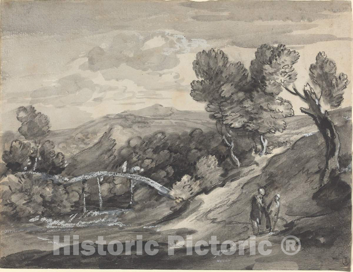 Art Print : Thomas Gainsborough, Wooded Upland Landscape with a Bridge, c. 1780 - Vintage Wall Art