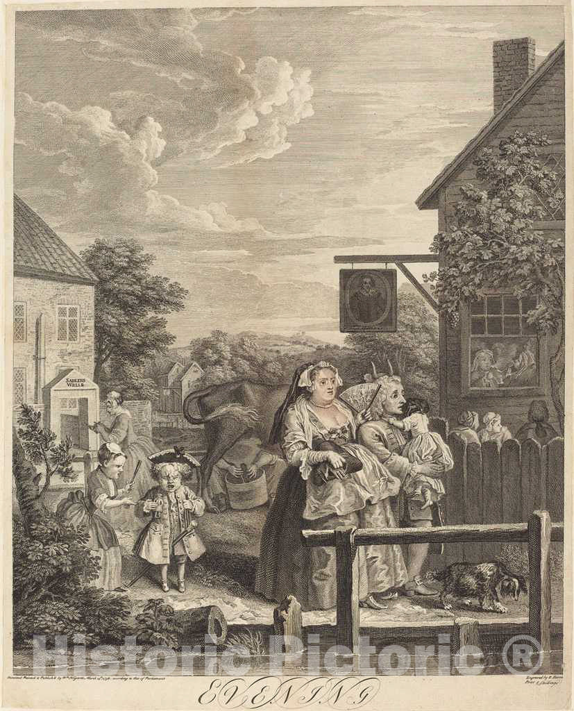 Art Print : William Hogarth, Evening, 1738 - Vintage Wall Art