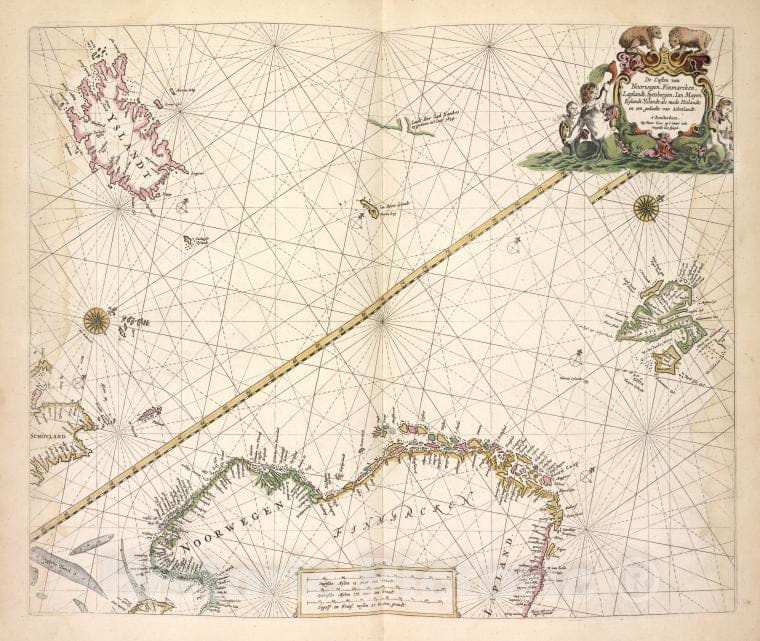 Historic 1672 Map - De Custen Van Noorwegen, Finmarcken, Laplandt, Spitsbergen, Ian - Iceland - Norway - Finland - Arctic Ocean - De Zee-Atlas Ofte Water-Wereld