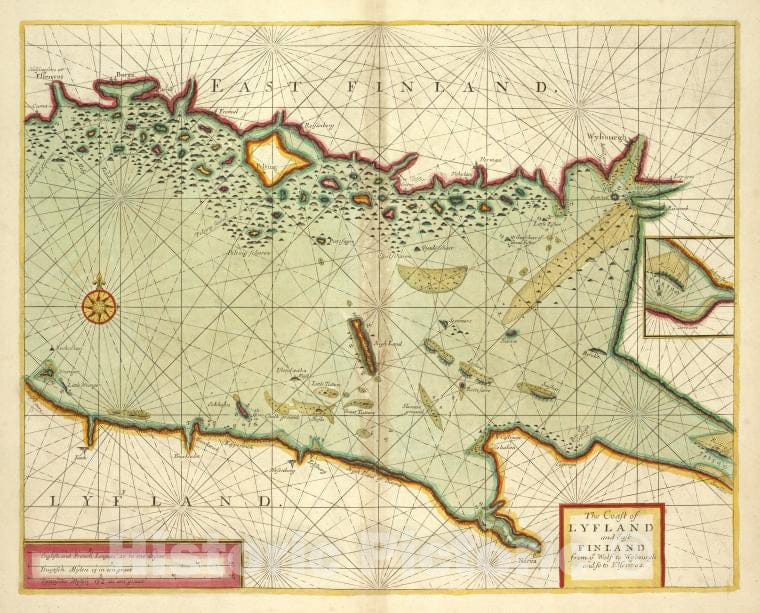 Historic 1702 Map - The Coast Of Lyf Land And East Finland From Wolf To Wybourgh And